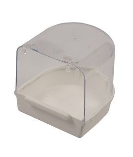 Cette baignoire en plastique pour oiseaux se fixe facilement à la cage.