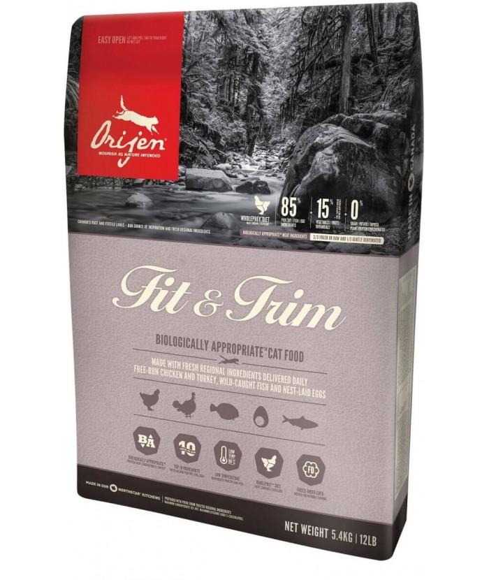 Comme leurs ancêtres sauvages, les chats ont besoin d'un régime comprenant des viandes entières et de plus petites quantités de fruits et d'herbes. Les Croquettes Orijen Fit & Trim pour Chat en surpoids ont été élaborées pour répondre à leurs besoins et se rapprocher de leur régime originel. Elles contiennent 44% de protéines nourrissantes et seulement 15% de glucides à faible indice glycémique pour préserver toutes leurs fonctions vitales (musculature, organes, système immunitaire et cardiovasculaire, vitalité...).